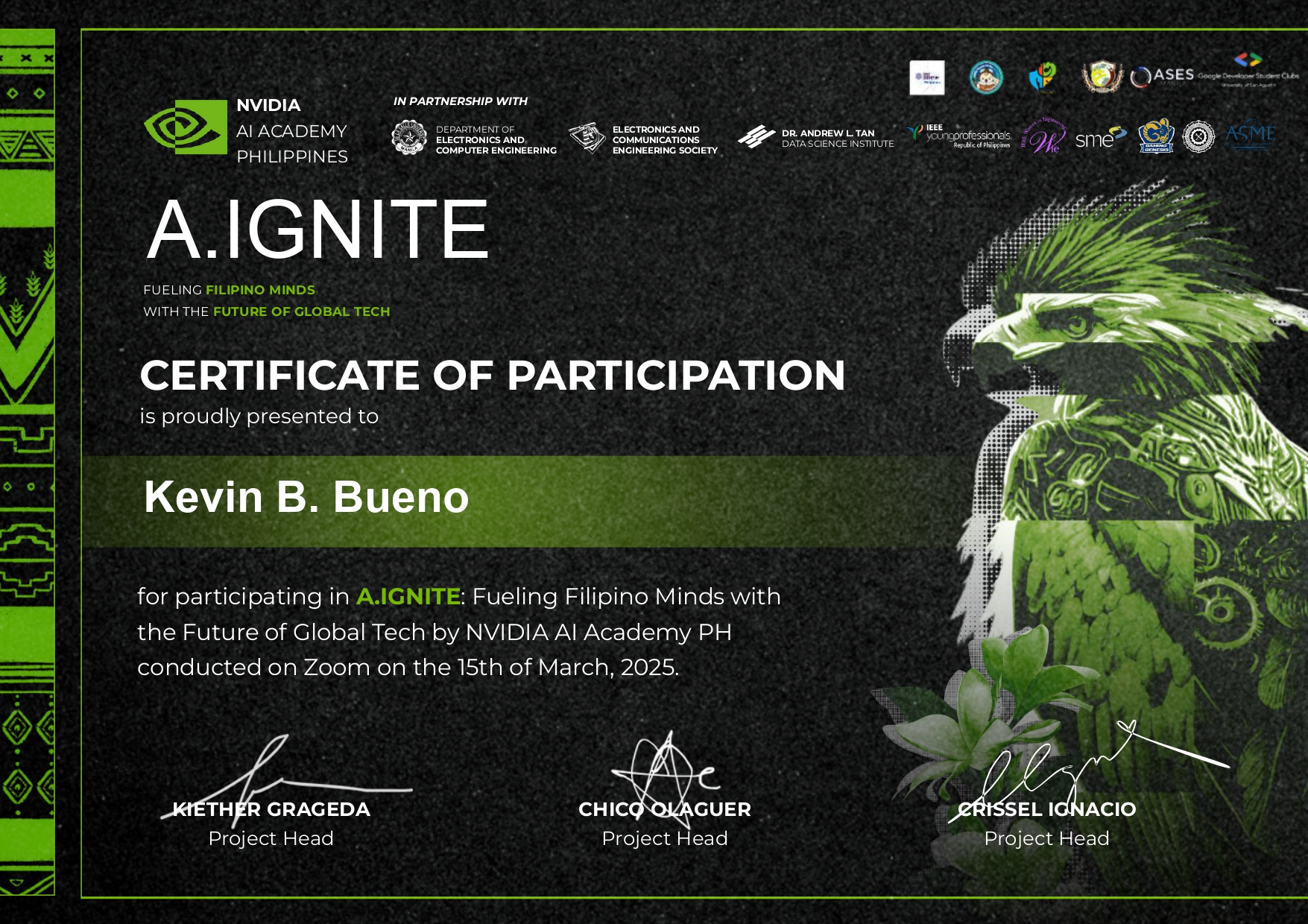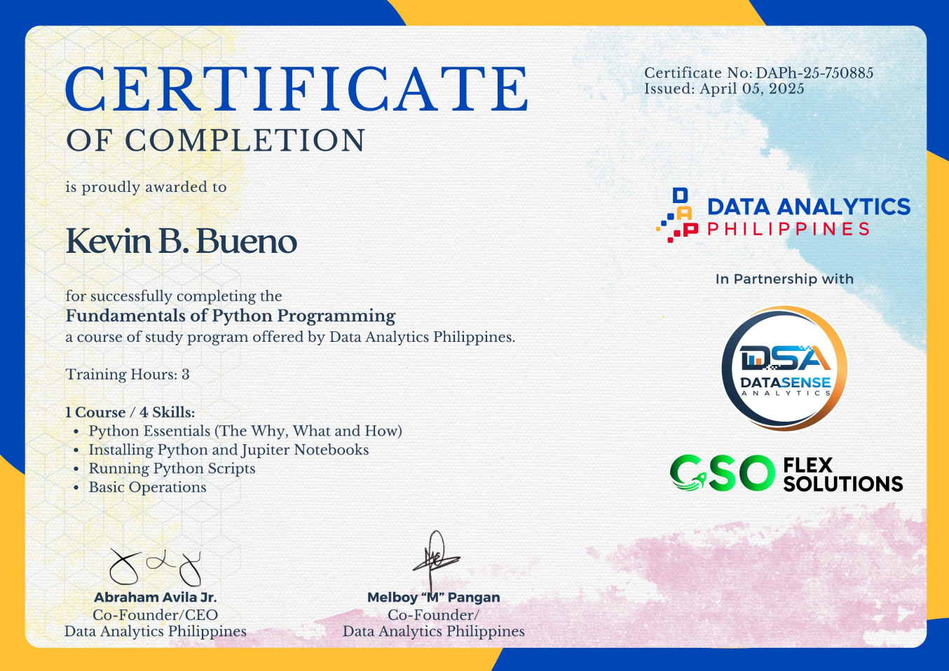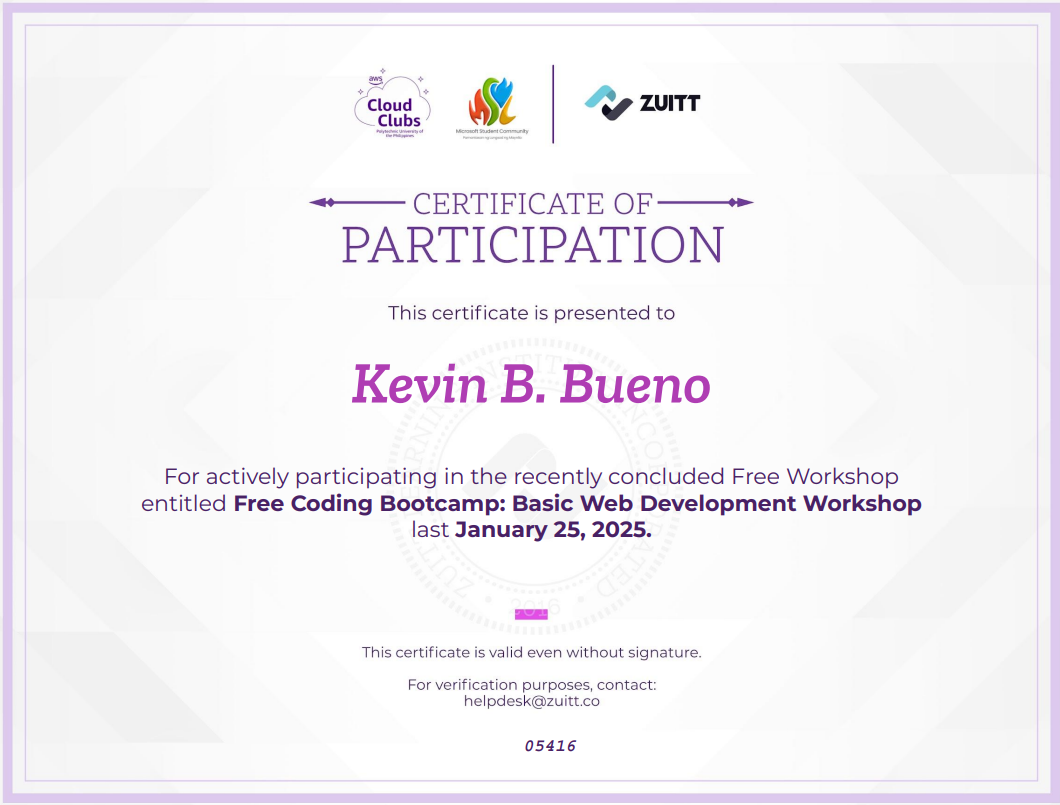 Successfully completed 80 hours of apprenticeship/ OJT Trainee program on DICT- Catanduanes. Had a great experience on attending different seminars and hands-on activities on different productivity tools such as Word, Excel, Photoshop, Windows 10 & Server installation, configuration, & client-server collaboration & explore the fundamentals of web (html & css). And collaborate with other interns and DICT officers.